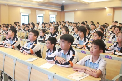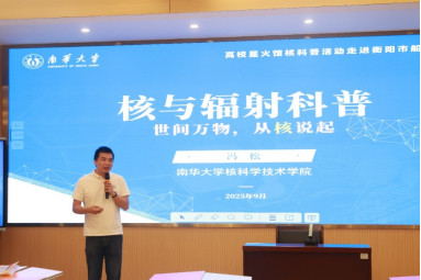 签约仪式结束后,南华大学核科学技术学院核工程与核技术系主任冯松为船山实验中学100余名师生带来了一场以《核与辐射科普-世间万物,从核说起》为题的科普讲座。报告从“纸不能无限折叠,尺不能无限对切”这一常识开始,引发同学们思考如何“看见”微观世界、原子核尺度的世界长什么样、物质世界又是由什么最基本的单元组成等问题。进而通过三步走的方式,介绍了我国核工业的发展历史、现状、未来,鼓励同学们在复杂的国际形势下要坚定不移地走高质量自主发展道路,要敢为人先。报告的最后,冯松博士还向同学们科普了无处不在的核辐射,引导学生正确看待电离辐射。同学们学习热情高涨,报告现场气氛热烈。