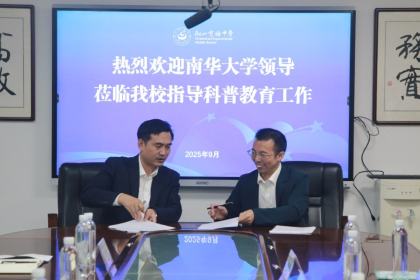 9月26日上午,南华大学“星火馆”负责人、核科学技术学院院长罗文一行来到衡阳市船山实验中学(以下简称船山实验中学)参加南华大学科学技术协会与船山实验中学关于湖南省“高校星火馆”科普教育资源下沉服务合作协议的签署仪式。签约仪式由船山实验中学校长周广柱主持。