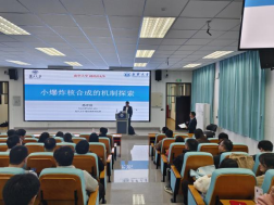 首先,孙开佳研究员十分详细地对小爆炸核合成机制的相关理论进行介绍。随后,结合课题组的相关理论研究成果和实验的最新进展进行了详细地讲解。最后,他对复旦大学核物理团队的科研情况进行了简单的介绍,并欢迎同学们报告复旦大学的研究生。