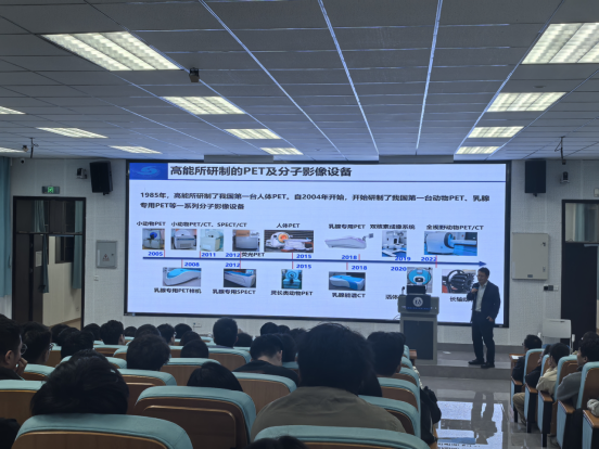 报告中,章志明研究员从核成像探测技术的基本原理出发,系统梳理了国内外最新研究进展,重点介绍了团队在高端核探测装备自主研发、核心算法攻关及产业化应用方面取得的一系列突破性成果。“一张清晰的核图像,往往能为科学决策提供关键依据,这就是‘一图胜千言’的价值所在”。现场展示的国产新型PET探测器、SPECT小型化样机及同步辐射成像应用案例,引发了师生们的热烈提问。