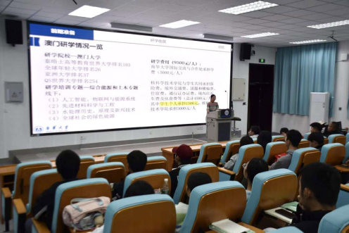 在分享会上,宁雨虹同学以“如何高效准备与研学收获”为主题,从前期准备与研学收获两大维度展开。她介绍,此次研学聚焦综合能源领域,涵盖人工智能与能源系统、先进材料科学与工程、水处理技术及全球绿色能源等多个前沿方向,课程内容紧跟科技发展潮流。在“研学收获”部分,宁雨虹重点分享了全英文授课环境下的学习体验。她指出,全程英文交流显著提升了自身的国际沟通能力;各类专题讲座不仅拓宽了专业视野,也加深了对学科交叉融合的理解;课堂中的实时互动则激发了思维碰撞与个性表达,实现了专业知识与国际交流能力的“双提升”。宁雨虹表示:“此次研学不仅让我接触到能源与土木领域的前沿技术,也亲身体验了澳门大学独特的书院制与国际化教学模式,收获远超预期。”