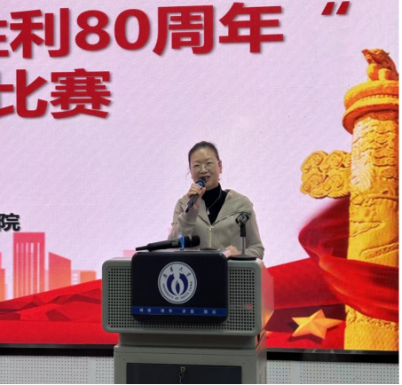 徐婵娟在致辞中,首先向莅临现场的评委老师、参赛研究生及观众致以热烈欢迎,向统筹赛事组织的工作人员表达诚挚感谢。她指出,本次比赛举办正值中国人民抗日战争暨世界反法西斯战争胜利80周年,又恰逢我国“人造太阳”等国之重器实现关键科技突破的重要节点,双重背景让“铭记历史、科技报国”的主题更显“硬核”分量。“从金银滩草原上升腾的‘蘑菇云’筑牢国防安全基石,到‘人造太阳’持续运行刷新世界纪录彰显大国科技实力,一代代核科技人始终将‘家国大义’融入科研血脉。”徐婵娟结合核学科发展历程,强调“科研报国从来不是抽象的口号,而是两弹元勋们隐姓埋名的坚守,是当代核科研工作者攻坚克难的担当”。她寄语全体同学:以此次演讲为桥梁,在回望抗战历史中汲取“不畏强敌、奋勇拼搏”的精神力量,在深耕核科学领域中筑牢“以身许国、科技兴邦”的理想信念,让抗战精神在青春科研路上绽放时代光芒,并预祝大赛圆满成功。