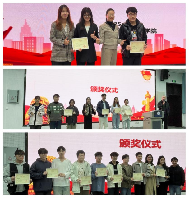 点评结束后,本次比赛的获奖名单正式揭晓。最终,贺靖婷与何凯欣组、刘瀚阳组等2组选手斩获一等奖;陈明钰组、杨谨硕组等4组选手荣获二等奖;贺渐尧组、刘子强组等7组选手获得三等奖。徐婵娟、唐雅晶、肖拥军等与会老师为获奖选手逐一颁发荣誉证书,并与全体获奖者合影留念,现场掌声持续不断,气氛热烈而庄重。