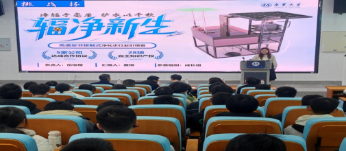 答辩过程中,各参赛队伍围绕核科学领域痛点难点展开汇报,项目成果兼具学术深度与应用价值,展现出核院学子扎实的专业素养与创新思维。来自核辐射防护与环境保护专业的参赛团队,以“基于新型疏水膜的非接触式膜蒸馏放射性废水处理装置”为主题展开汇报;核化工与核燃料专业团队带来的“国产高性能固相萃取膜”项目,同样成为答辩现场的焦点;其余参赛团队的创新成果同样亮眼,“便携式中子剂量率快速检测仪”“基于机器学习的核素能谱自动识别系统”“基于核素示踪技术的土壤重金属迁移规律研究”等。