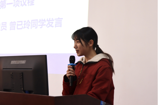 大会首先由优秀运动员代表曾已玲发言。她回顾了大学四年参与大运会的成长历程,从初入赛场时的紧张局促到如今的从容自信,这一转变既源于个人的坚持训练,也离不开学院体育团队的团结协作。她代表全体运动员向为大运会辛勤付出的老师与工作人员致以诚挚感谢,并号召同学们积极参与体育锻炼,在核科学道路上跑出青春“加速度”。