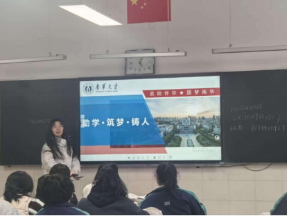 在沂源县第一中学,张继雯同学走进高三教室,系统解读国家及南华大学奖助政策,并结合自身经历讲解四六级备考和学科竞赛要点。在蓝山县第二中学,李朋健同学通过50份问卷精准调研,面向200余名高三学子开展宣讲,并设立“一对一咨询台”服务十余人,协助破解了学生对资助政策“知而不详”的难题。在隆回县麻塘山乡九年义务制学校,李少磊同学面向初三学生及村民开展为期三天的宣讲,累计覆盖群众800余人次,发放宣传手册等500余份。