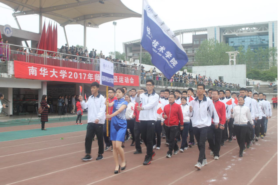 10月13日上午,南华大学2017年师生田径运动会在红湘校区北校体育场隆重开幕。大会主席团、组委会、仲裁委员会等多位校领导莅临现场,同时各院辅导员、相关职能部门人员与各学院学生代表、运动员也参加了开幕式。