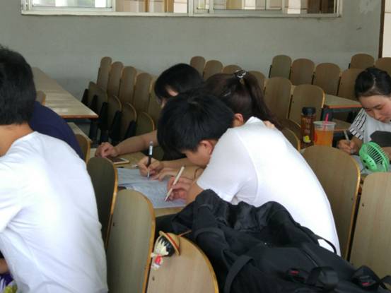 本次预赛,参赛者需经过两部分考验:第一部分是以闭卷笔试的形式进行,题型包括:单选题,多选题,填空题,案例分析题,主要考察一些基础的心理知识,但涉及的内容非常广泛。到场各组参赛队员或分工合作以加快效率或三人共同答题以提高正确率。在经过不到一小时时间后,笔试结束。第二部分的考验则以一道案例题为主,每支队伍都抽取不同的题目,参赛队伍需进行15分钟组内讨论后,各队分别派出一名代表为大家上台,结合案例,分析题目进行详细解答。小组讨论的形式充分考察了参赛队伍对心理知识的掌握和自我心理的调控与支配能力,更重要的团队合作和汇集关键点的能力。虽然8支队伍抽到的案例不尽相同,但却贴近现实,契合大家的生活,这给同学们很大的发挥空间。整场比赛秩序井然,同学们紧张却不失从容。