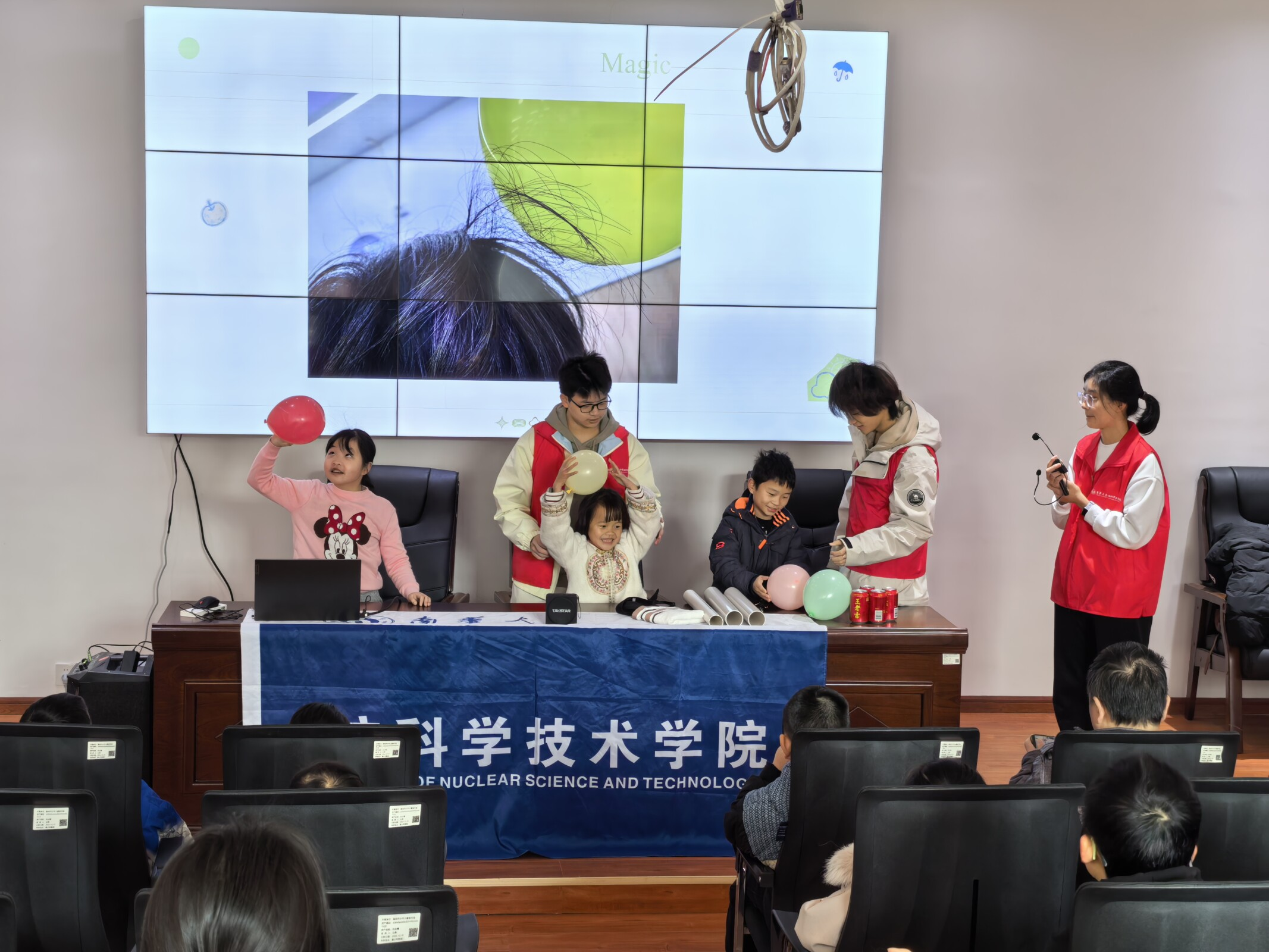 为积极响应国家科普教育号召,激发儿童科学兴趣,助力青少年科学素养提升,近期,南华大学核科学技术学院“核”你一起棒棒团志愿服务团队走进衡阳市儿童图书馆,为小朋友们带来了一场别开生面的静电科普课堂——“静电魔法王国”。本次活动以趣味互动和实验体验为主线,带领孩子们化身“静电小巫师”,在魔法般的实验中探索静电的奥秘。