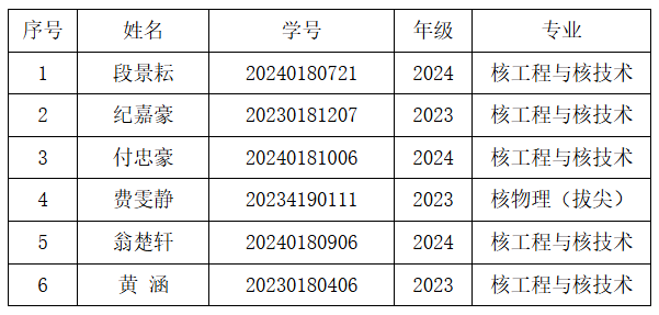 根据南华大学核科学技术学院新加坡国立大学创新创业专题(线上+线下)研学项目候选人遴选方案的要求,依据申请人专业课程平均学分绩点及外语水平,经由学生自主申请、学院审定,现将研学项目拟推荐人名单予以公示。公示期自2025年09月30日起3个工作日。如有异议,请在公示期内以书面或口头形式向学院反映。反映情况要实事求是,具体真实,署真实姓名,以便调查核实。