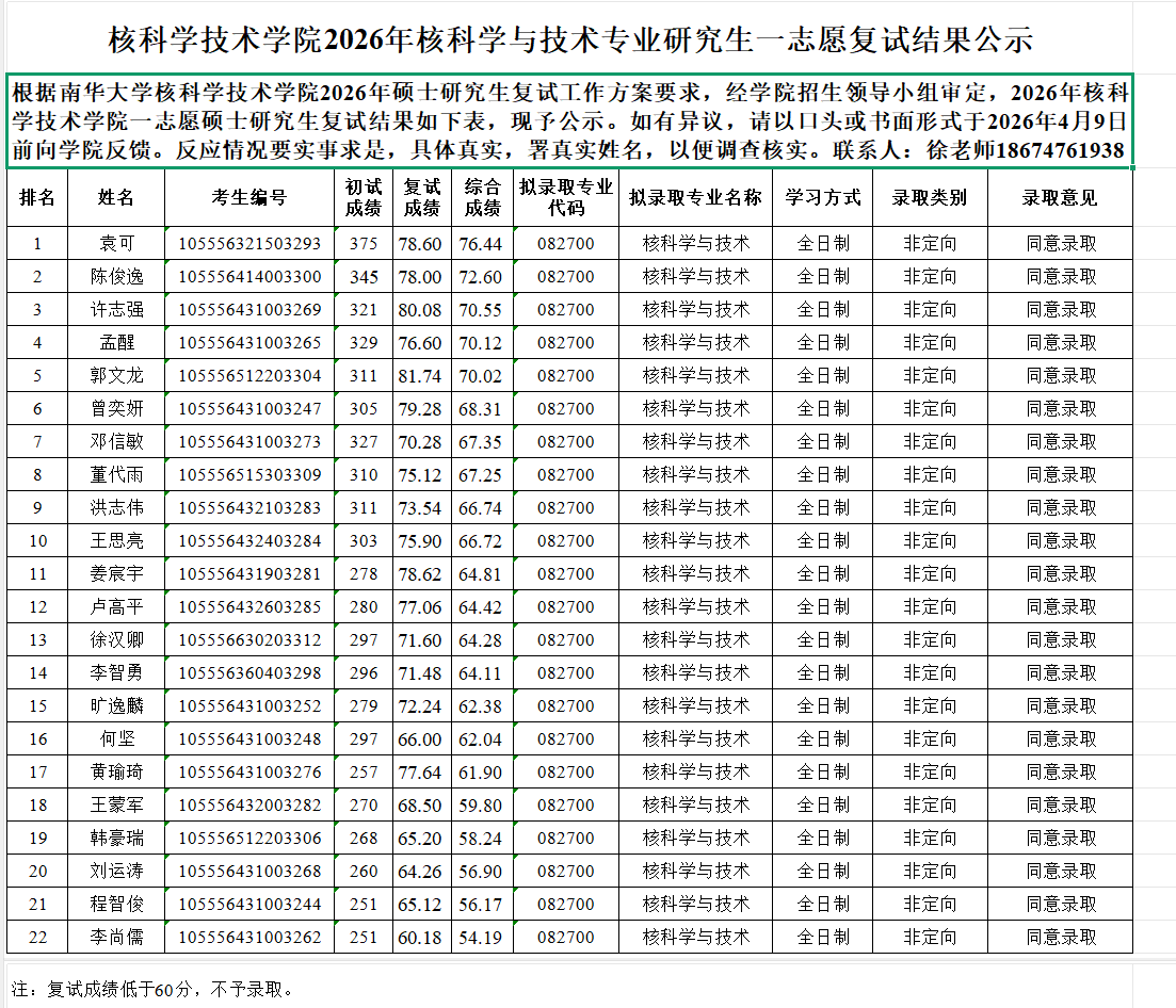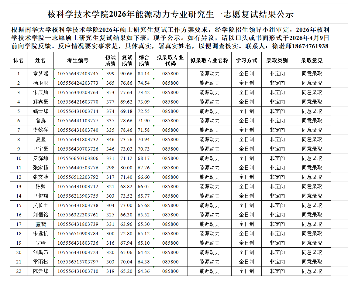 下一条:南华大学核科学技术学院2026年硕士研究生招生、复试录取工作方案