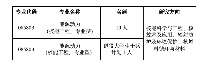 (4)为了让更多考生有机会参加复试,同一考生同一批次只允许参加我院核科学与技术(082700)、能源动力(085800,核能工程)两者其中之一的调剂报名与复试工作;对于同时填报两个志愿的调剂考生,默认按照能源动力专业参与复试名单遴选,不再另行通知考生。